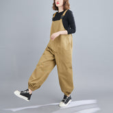 Women Loose Pleated Suspenders Casual Jumpsuit KHAKI