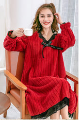 Sku YS-!116563 Material Coral Fleece Style Loose Feature Lace-up . Solid Color Neckline V-neck Occasion Casual . Home Wear Seasons Spring . Autumn . Winter Type Pajamas Color RED.BEIGE.PURPLE Size L.XL.2XL Size Chart:Please consult the size chart we provide for this item's measurements to...- $35.99