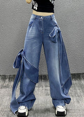 Chic Blue Bow Pockets High Waist Denim Pants Summer