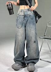 Chic Blue False Two Pieces High Waist Denim Pants Summer