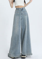 Modern Blue Tasseled High Waist Denim Wide Leg Pants Fall Blue