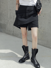 Casual High Waisted Pleated Split-Joint Irregular Shorts BLACK