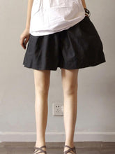 Cotton Solid Color Loose Waist Wide Leg Shorts Pants BLACK