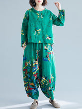 Sku CY-!33066 Material >70%Cotton Style Loose . Wide Leg Feature Floral . Printed Occasion Going out . Casual . Vacation Neckline Round-neck Seasons Spring . Autumn . Winter Type Suits Color RED.GREEN Size M.L.XL.2XL Size Chart: Please consult the size chart we provide for...- $43.99