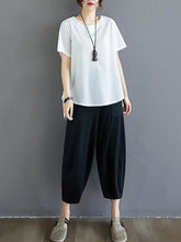 Original Round-Neck T-Shirts Tops+Harem Pants Suits BLACK