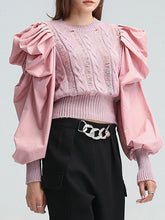 Stitching Contrast Color Fake Two-Piece Long Sleeve Sweater BLACK