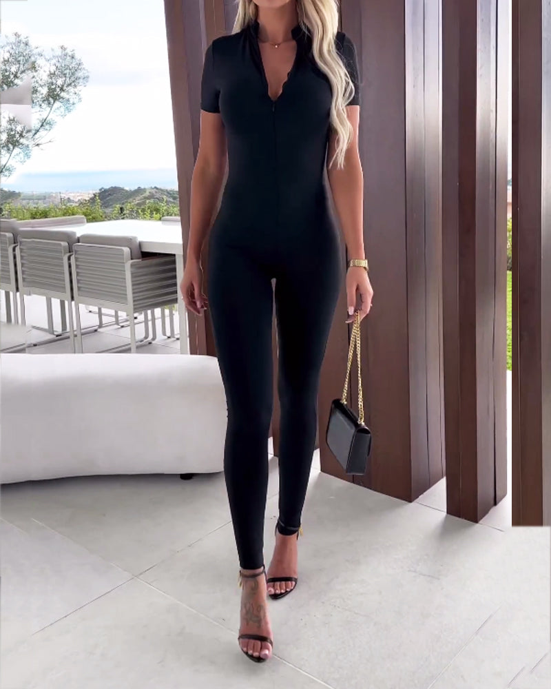 | Product Name | Casual Solid Color Zipper Jumpsuit | |||||