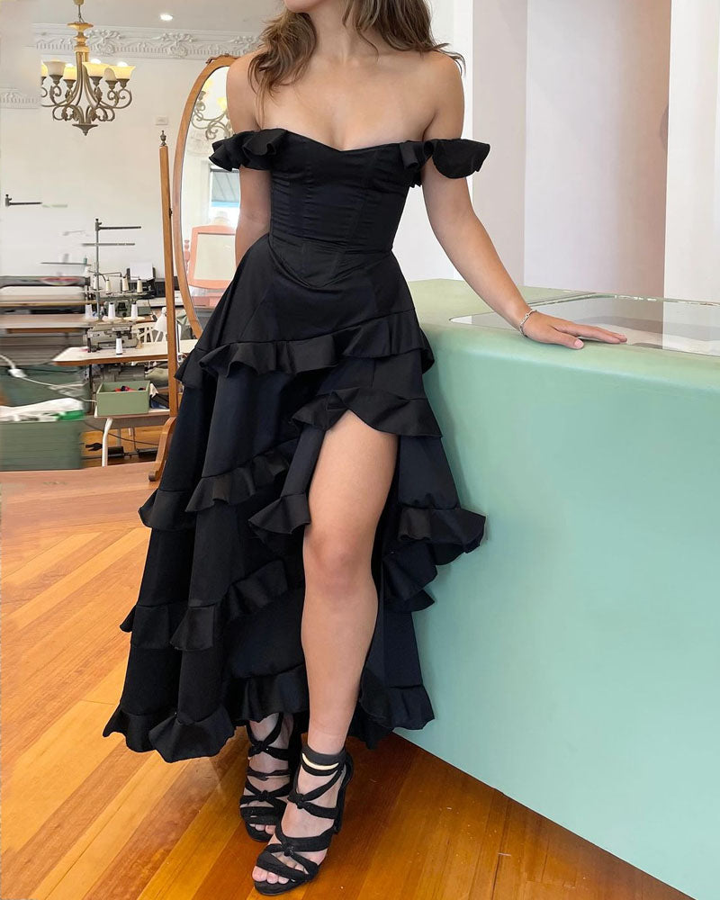 | Product Name | Fashion Solid Color One Shoulder Ruffle Dress | |||||