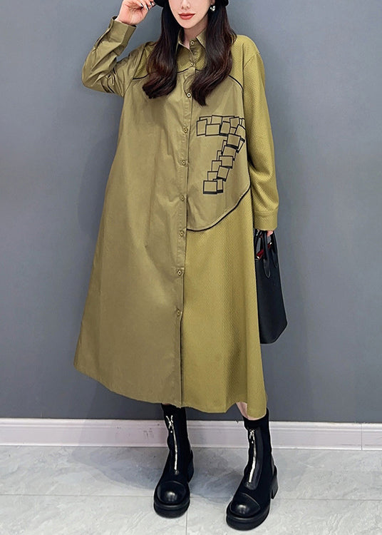 Green Pockets Cotton Blouse Dress Peter Pan Collar Long Sleeve Fabric: Cotton Blended Size & Fit: Fit: This garment fits true to size. Length: Size 2XL measures 44.85"from shoulder to hem Bust: Great for any cup size. Waist: Loose Fit. Comfortable room throughout midsection. Hip: Loose Fit - room for hips. Hand Wash Cold.