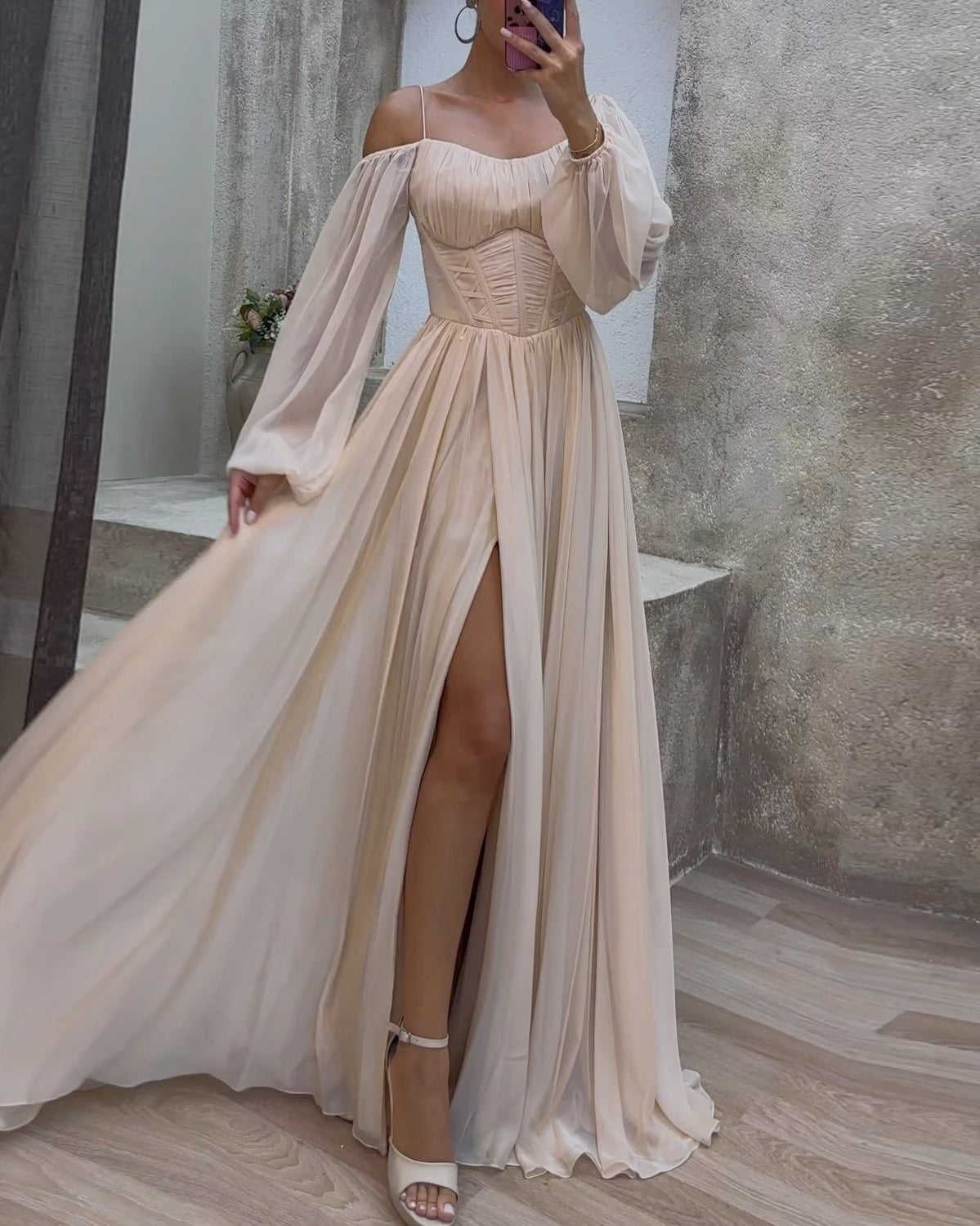 | Product Name | Bubble Long Sleeve Neck Slit Dress | |