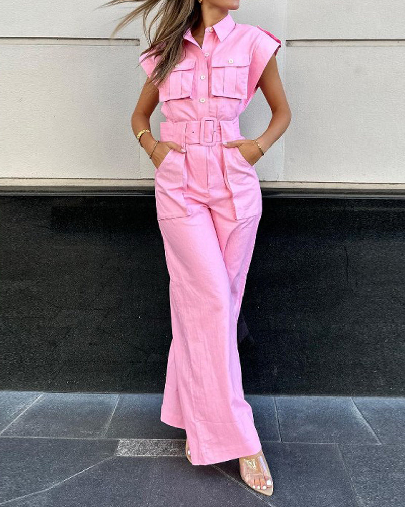 | Product Name | Lapel solid color tie waist jumpsuit (belt included) | |