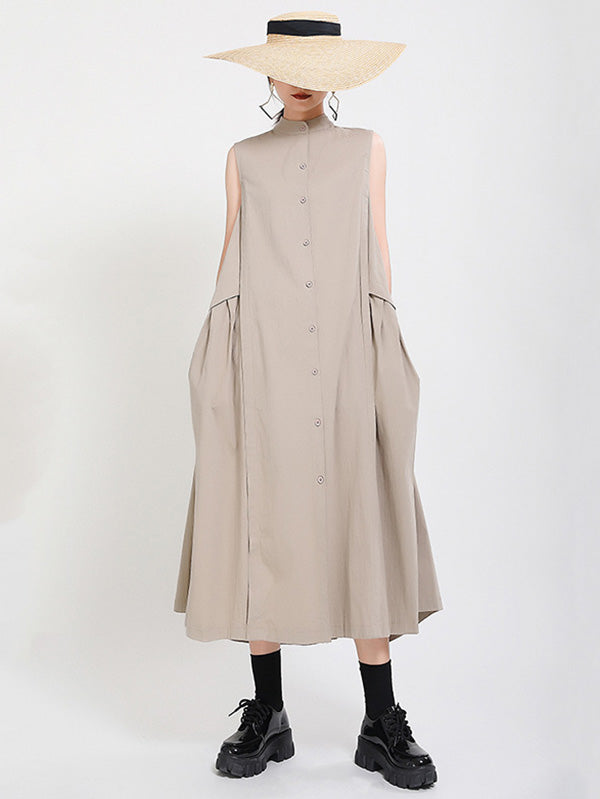Original Solid Sleeveless Stand Collar Shirt Dress