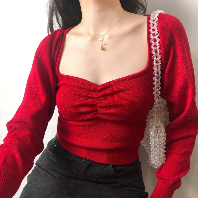 Super cute for the colder seasons 🍂 The Oxford sweater has a delicate ballerina neck with puff sleeves.