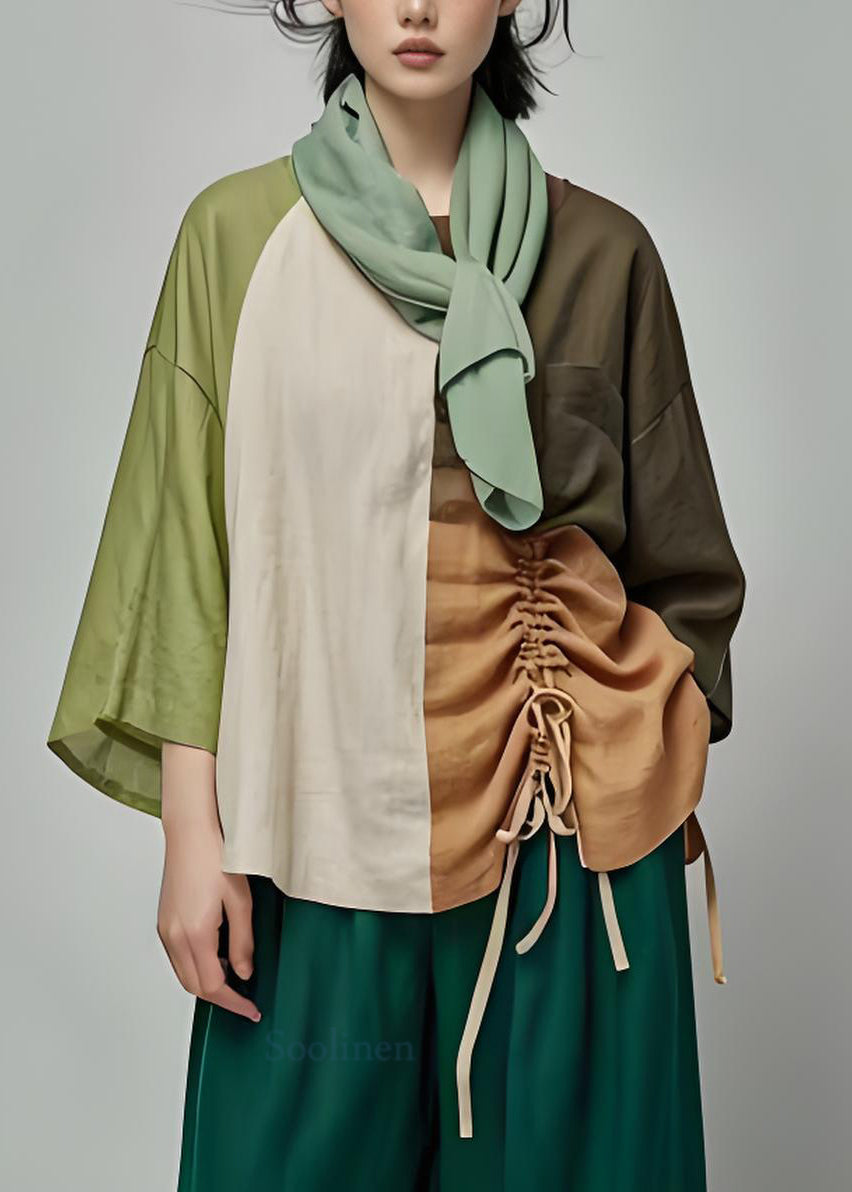 Plus Size Colorblock Cinched Patchwork Cotton Top Summer Fabric: Cotton Blended Size & Fit: Fit: This garment fits true to size. Length: Size 2XL measures 25.35"from shoulder to hem Bust: Great for any cup size. Waist: Loose Fit. Comfortable room throughout midsection. Hip: Loose Fit - room for hips. Hand Wash Cold.