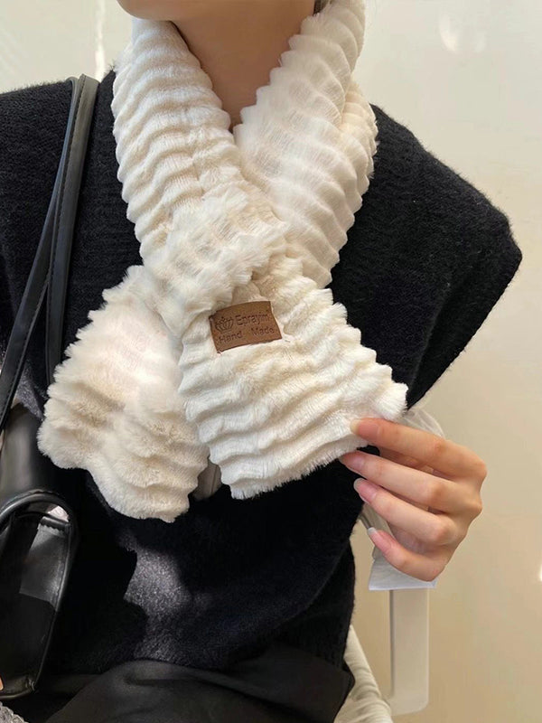 Retro Solid Color Warm Plush Cross Scarf