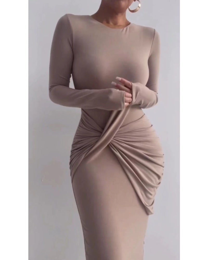 Fall sexy long-sleeved irregular slim dress
