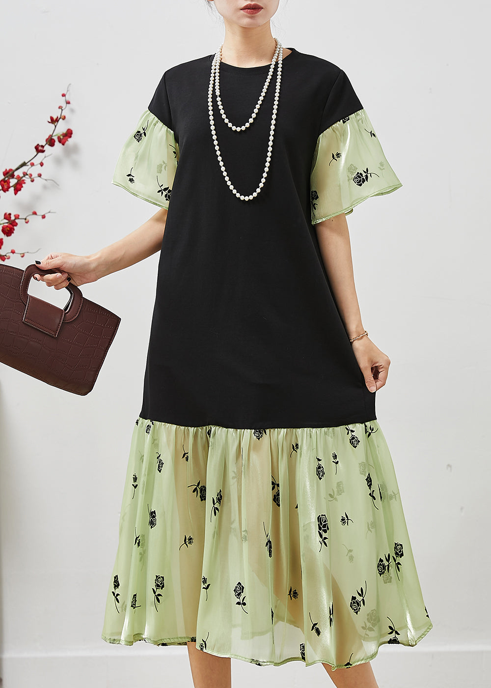 Stylish Black Oversized Patchwork Organza Maxi Dresses Summer Fabric: Cotton Blended Size & Fit: Fit: This garment fits true to size. Length: Size L measures 46.8"from shoulder to hem Bust: Great for any cup size. Waist: Loose Fit. Comfortable room throughout midsection. Hip: Loose Fit - room for hips. Hand Wash Cold.